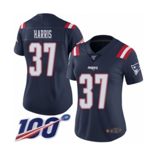 >Women's New England Patriots #37 Damien Harris Limited Navy Blue Rush Vapor Untouchable 100th Season Football Jersey