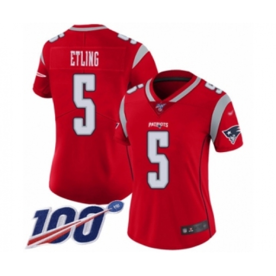 >Women's New England Patriots #5 Danny Etling Limited Red Inverted Legend 100th Season Football Jersey