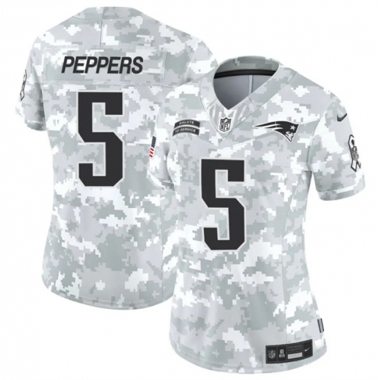 >Women's New England Patriots #5 Jabrill Peppers 2024 F.U.S.E Arctic Camo Salute To Service Limited Stitched Jersey(Run Small)