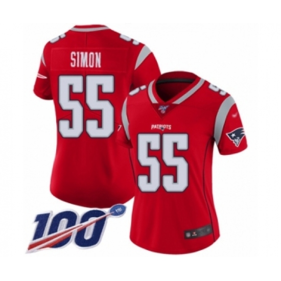 Women's New England Patriots #55 John Simon Limited Red Inverted Legend 100th Season Football Jersey