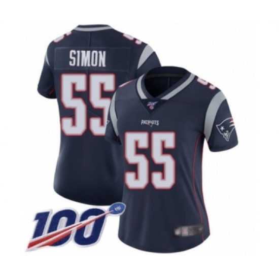 Women's New England Patriots #55 John Simon Navy Blue Team Color Vapor Untouchable Limited Player 100th Season Football Jersey