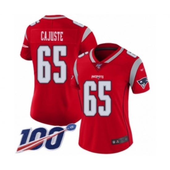 >Women's New England Patriots #65 Yodny Cajuste Limited Red Inverted Legend 100th Season Football Jersey