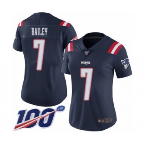 >Women's New England Patriots #7 Jake Bailey Limited Navy Blue Rush Vapor Untouchable 100th Season Football Jersey