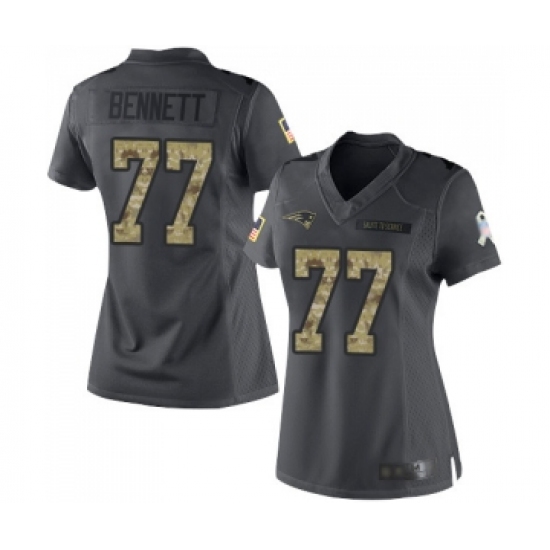 >Women's New England Patriots #77 Michael Bennett Limited Black 2016 Salute to Service Football Jersey