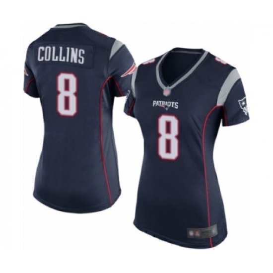 >Women's New England Patriots #8 Jamie Collins Game Navy Blue Team Color Football Jersey