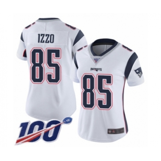 >Women's New England Patriots #85 Ryan Izzo White Vapor Untouchable Limited Player 100th Season Football Jersey