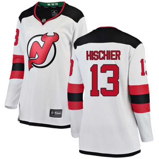 Home>NHL>New Devils Jersey>Nico Hischier>Women's New Jersey Devils #13 Nico Hischier Fanatics Branded White Away Breakaway NHL Jersey