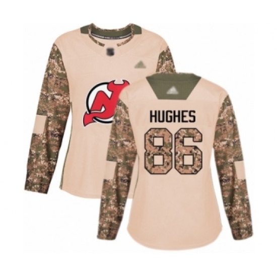 Women's New Jersey Devils #86 Jack Hughes Authentic Camo Veterans Day Practice Hockey Jersey