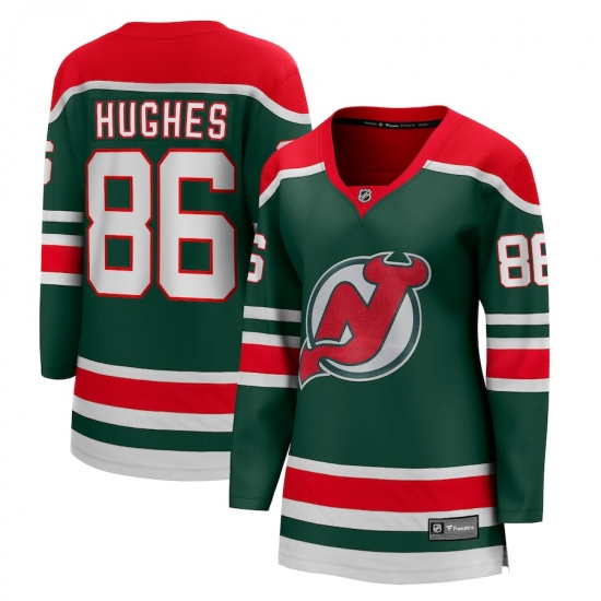 >Women's New Jersey Devils #86 Jack Hughes Fanatics Branded Green 2020-21 Special Edition Breakaway Player Jersey