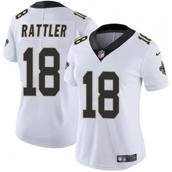 Women's New Orleans Saints #18 Spencer Rattler White Vapor Stitched Game Jersey(Run Small)