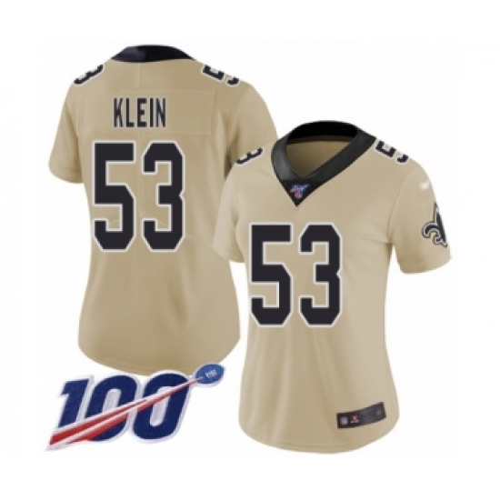 >Women's New Orleans Saints #53 A.J. Klein Limited Gold Inverted Legend 100th Season Football Jersey