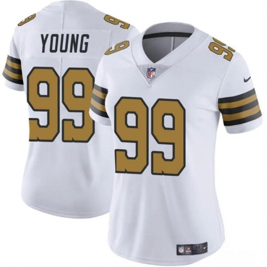 >Women's New Orleans Saints #99 Chase Young White Color Rush Vapor Stitched Game Jersey