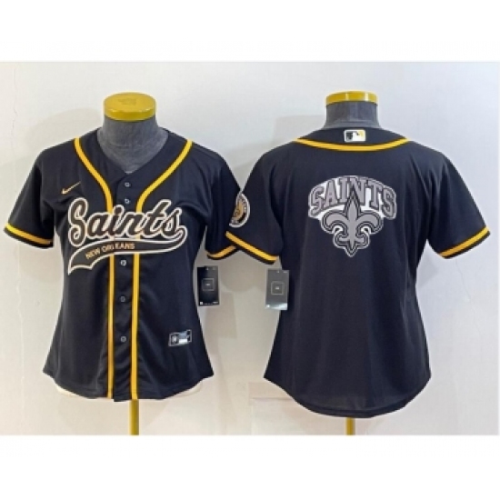 >Women's New Orleans Saints Black Team Big Logo With Patch Cool Base Stitched Baseball Jersey
