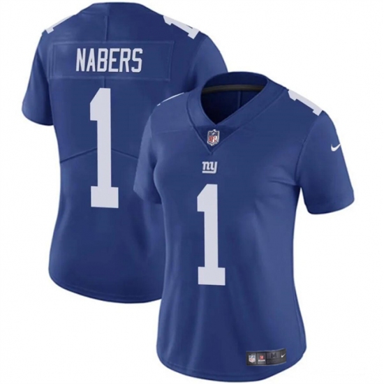 >Women's New York Giants #1 Malik Nabers Blue Vapor Stitched Jersey(Run Small)