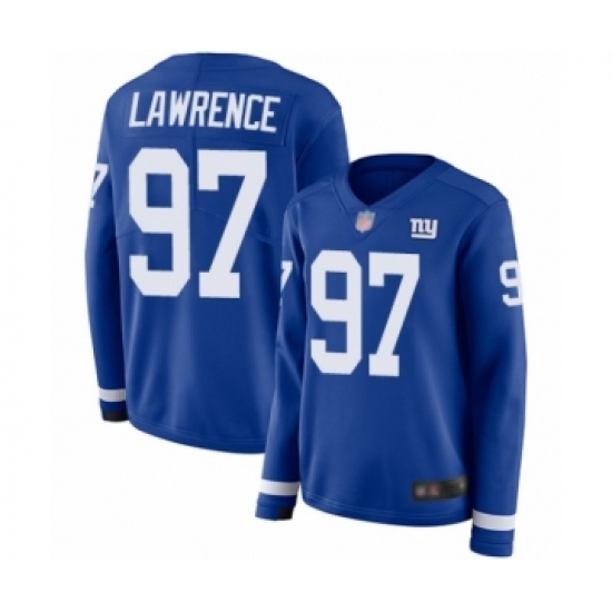 >Women's New York Giants #97 Dexter Lawrence Limited Royal Blue Therma Long Sleeve Football Jersey