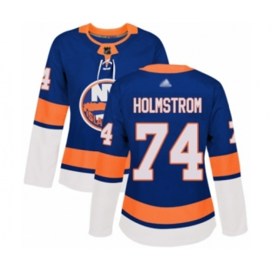 >Women's New York Islanders #74 Simon Holmstrom Authentic Royal Blue Home Hockey Jersey