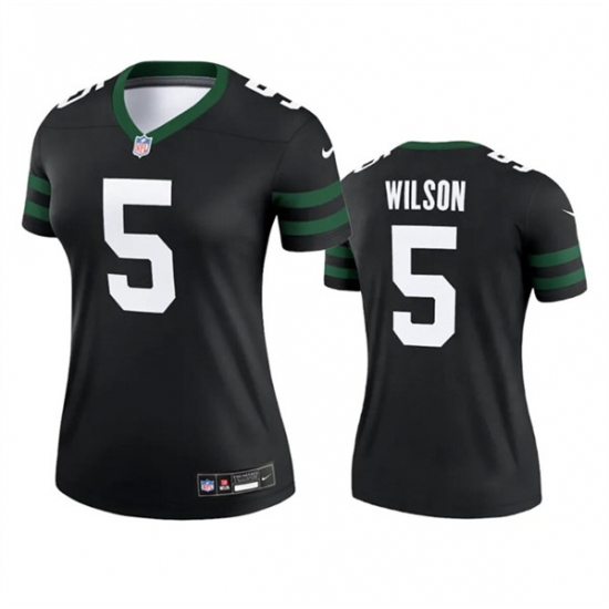 >Women's New York Jets #5 Garrett Wilson Black 2024 Football Stitched Jersey(Run Small)