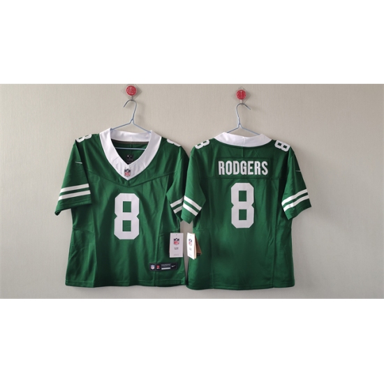 >Women's New York Jets #8 Aaron Rodgers Green 2024 FU.S.E Vapor Football Stitched Jersey