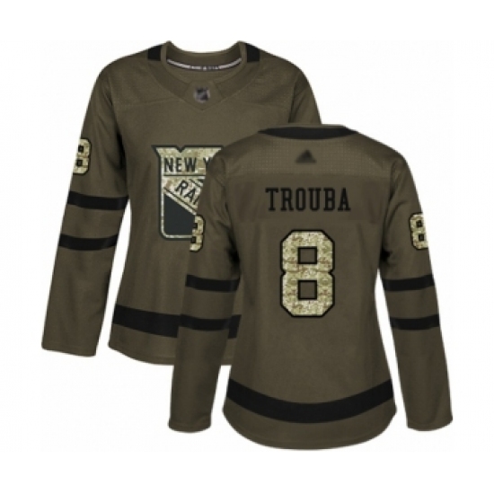 >Women's New York Rangers #8 Jacob Trouba Authentic Green Salute to Service Hockey Jersey