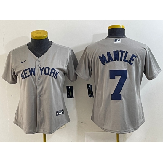 Women's Majestic New York Yankees #7 Mickey Mantle Authentic Grey Road MLB Jersey
