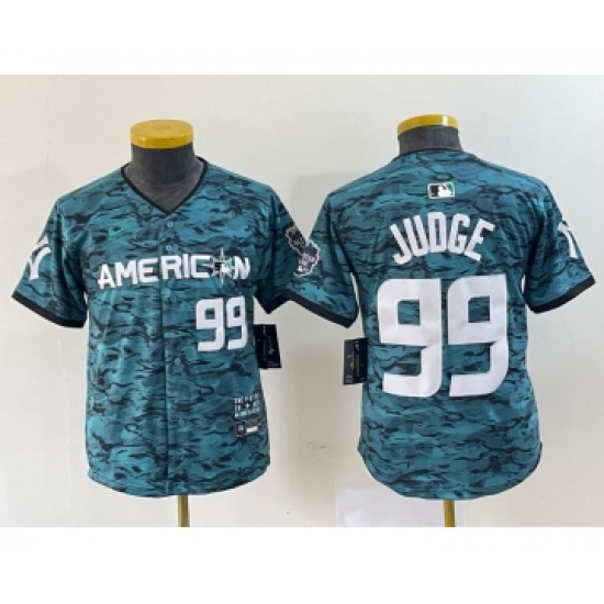 Women's New York Yankees #99 Aaron Judge Number Teal 2023 All star Cool Base Stitched Baseball Jersey