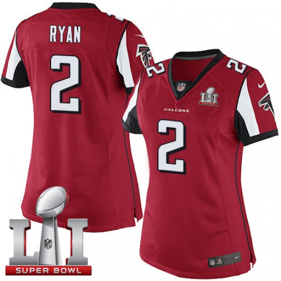 Home>NFL>Atlanta Falcons>Matt Ryan>Women's Nike Atlanta Falcons #2 Matt Ryan Red Team Color Super Bowl LI 51 Vapor Untouchable Limited Player NFL Jersey