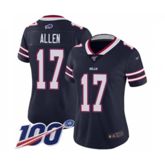 >Women's Nike Buffalo Bills #17 Josh Allen Limited Navy Blue Inverted Legend 100th Season NFL Jersey