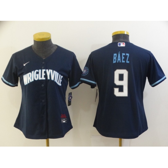 >Women's Nike Chicago Cubs #9 Javier Baez Navy City Royal Alternate Stitched Baseball Jersey
