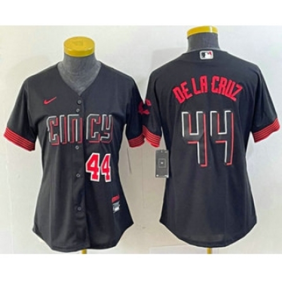 >Women's Nike Cincinnati Reds #44 Elly De La Cruz Number Black 2023 City Connect Cool Base Stitched Baseball Jersey
