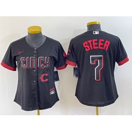 Women's Nike Cincinnati Reds #7 Spencer Steer Black 2023 City Connect Cool Base Stitched Baseball Jersey