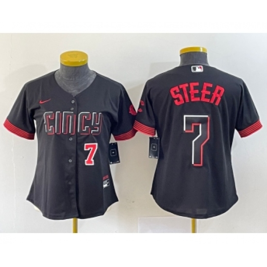 Women's Nike Cincinnati Reds #7 Spencer Steer Numer Black 2023 City Connect Cool Base Stitched Baseball Jersey1