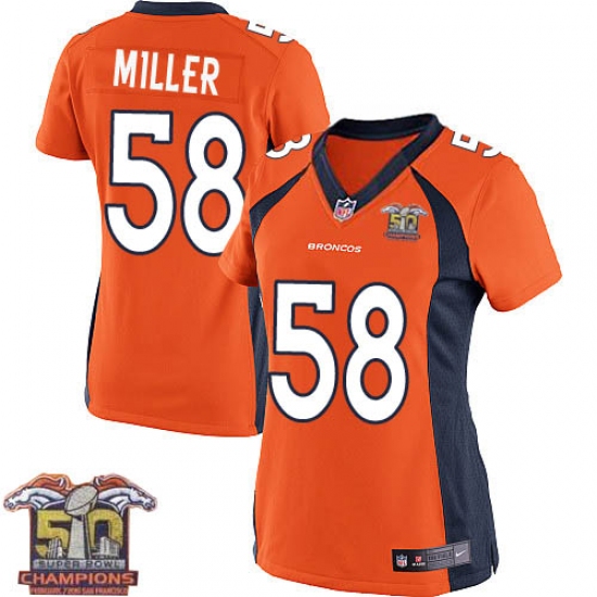 Women's Nike Denver Broncos #58 Von Miller Elite Orange Team Color Super Bowl 50 Champions NFL Jersey