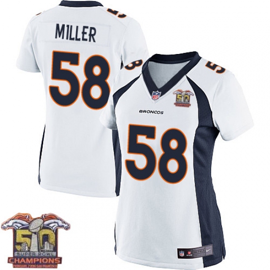Women's Nike Denver Broncos #58 Von Miller Elite White Super Bowl 50 Champions NFL Jersey