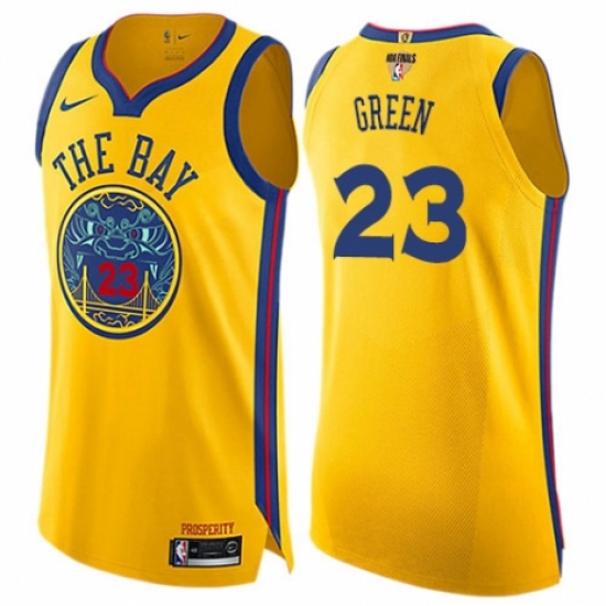 >Women's Nike Golden State Warriors #23 Draymond Green Swingman Gold 2018 NBA Finals Bound NBA Jersey - City Edition