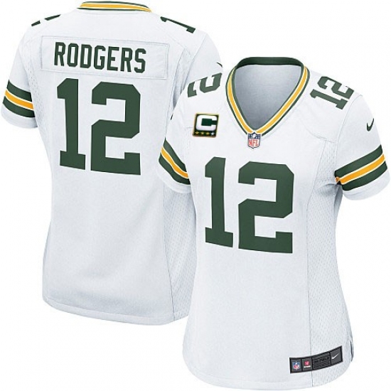 Women's Nike Green Bay Packers #12 Aaron Rodgers Elite White C Patch NFL Jersey