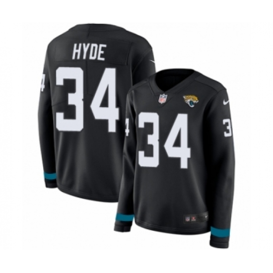 Women's Nike Jacksonville Jaguars #34 Carlos Hyde Limited Black Therma Long Sleeve NFL Jersey