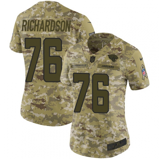 >Women's Nike Jacksonville Jaguars #76 Will Richardson Limited Camo 2018 Salute to Service NFL Jersey