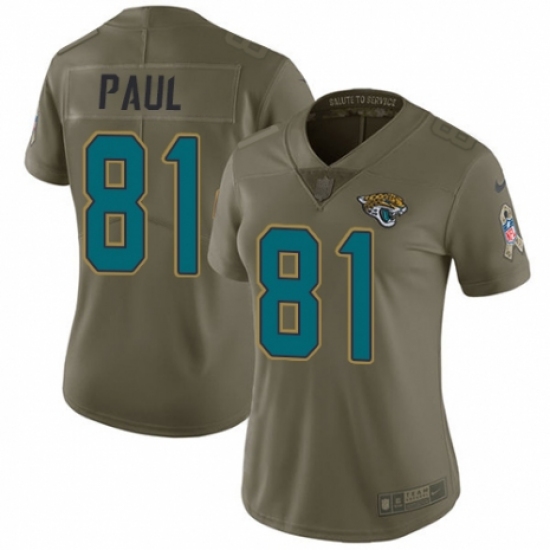 >Women's Nike Jacksonville Jaguars #81 Niles Paul Limited Olive 2017 Salute to Service NFL Jersey