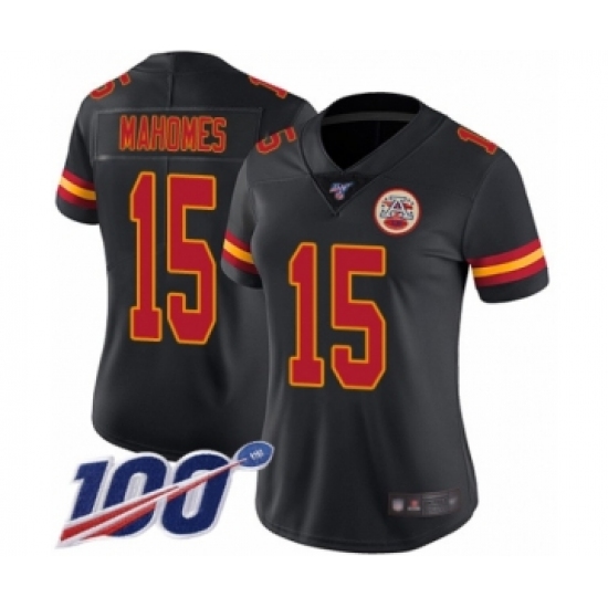 Women's Nike Kansas City Chiefs #15 Patrick Mahomes Limited Black Rush Vapor Untouchable 100th Season NFL Jersey