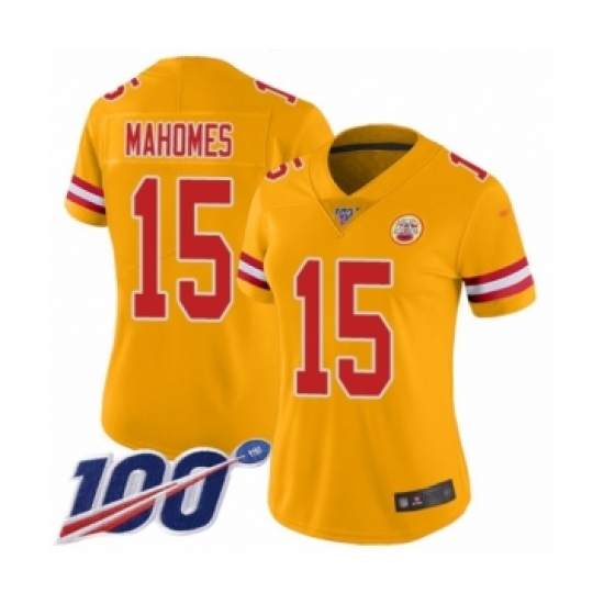 Women's Nike Kansas City Chiefs #15 Patrick Mahomes Limited Gold Inverted Legend 100th Season NFL Jersey