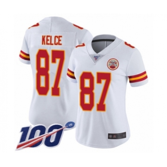 Women's Nike Kansas City Chiefs #87 Travis Kelce White Vapor Untouchable Limited Player 100th Season NFL Jersey