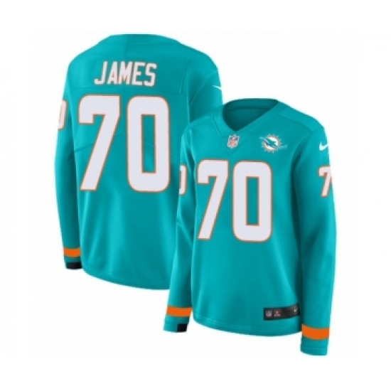 Women's Nike Miami Dolphins #70 Ja'Wuan James Limited Aqua Therma Long Sleeve NFL Jersey