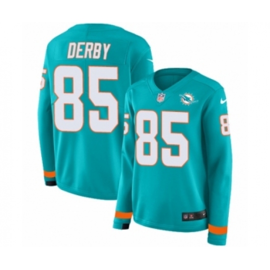 >Women's Nike Miami Dolphins #85 A.J. Derby Limited Aqua Therma Long Sleeve NFL Jersey