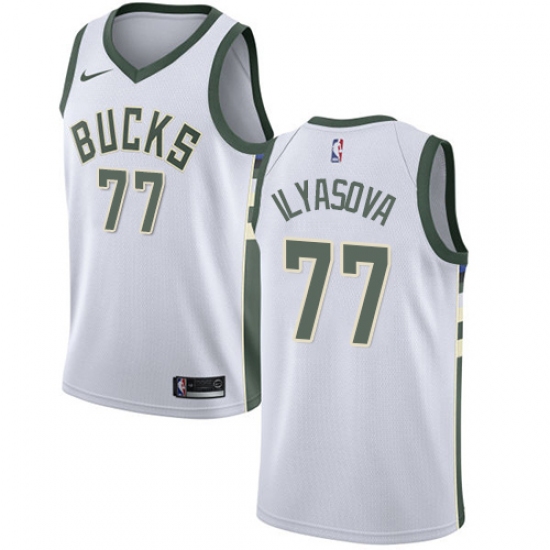 >Women's Nike Milwaukee Bucks #77 Ersan Ilyasova Swingman White NBA Jersey - Association Edition