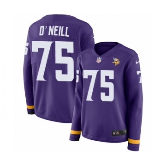>Women's Nike Minnesota Vikings #75 Brian O'Neill Limited Purple Therma Long Sleeve NFL Jersey