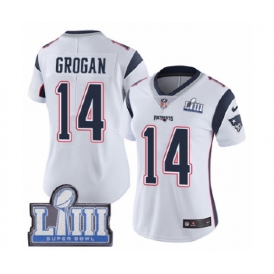 Women's Nike New England Patriots #14 Steve Grogan White Vapor Untouchable Limited Player Super Bowl LIII Bound NFL Jersey
