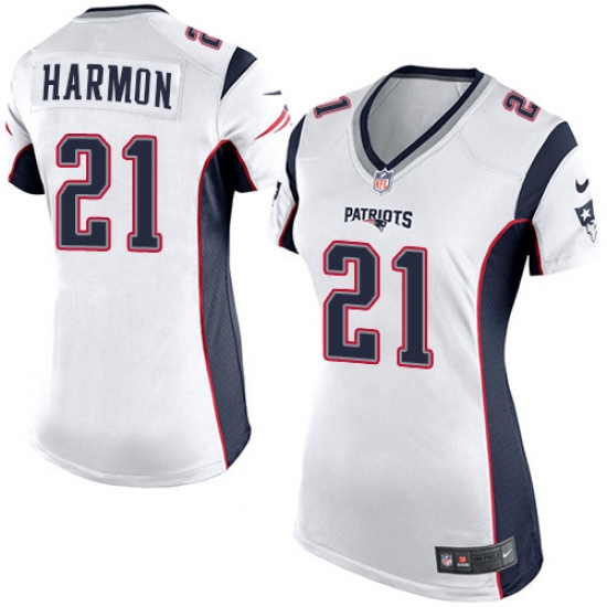 >Women's Nike New England Patriots #21 Duron Harmon Game White NFL Jersey