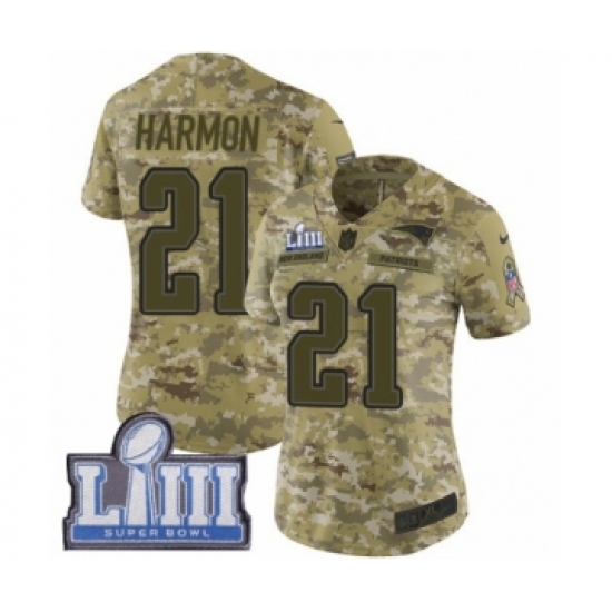 Women's Nike New England Patriots #21 Duron Harmon Limited Camo 2018 Salute to Service Super Bowl LIII Bound NFL Jersey