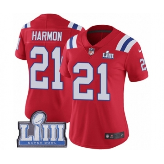Women's Nike New England Patriots #21 Duron Harmon Red Alternate Vapor Untouchable Limited Player Super Bowl LIII Bound NFL Jersey