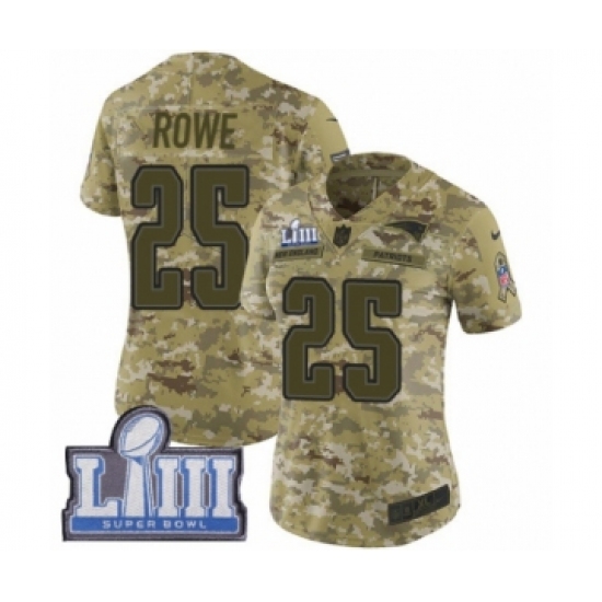 Women's Nike New England Patriots #25 Eric Rowe Limited Camo 2018 Salute to Service Super Bowl LIII Bound NFL Jersey